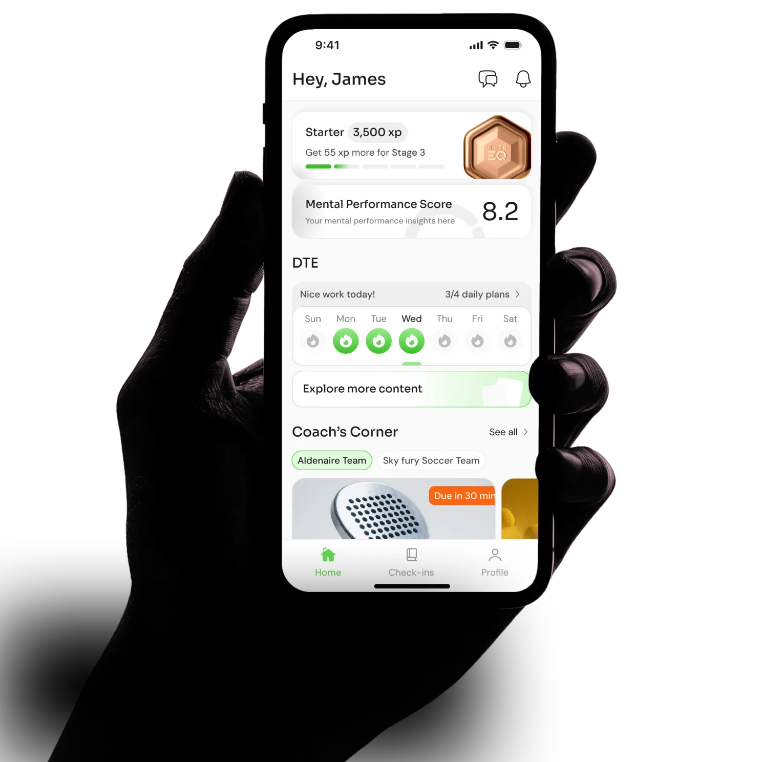 The DTE flow keeps athletes engaged with short, science-backed sessions designed for consistency and growth.