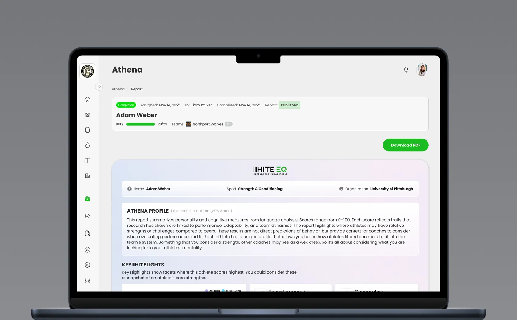By combining science-backed assessments with predictive AI, HITE EQ helps athletes develop, coaches lead, and organizations gain a lasting competitive edge.